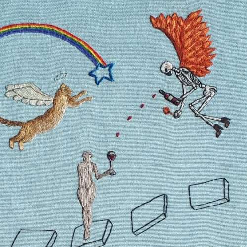 Ham tuval bezi üzerine, yün iplikler  işleyerek çalışan sanatçı Funda Alkan, ,ideal beden ölçülerine sahip yapma/yapay kadın kalıplarının teşvik edildiği bir toplumda, beden algısı, medya ve kültür gibi imgeleri "parçalanmış beden" kavramı üzerinden sorunsallaştırıyor.